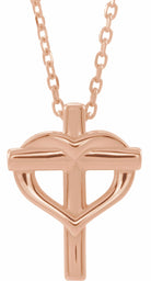 R45399 / Necklace / 14K Rose / Polished / Youth Cross With Heart Necklace