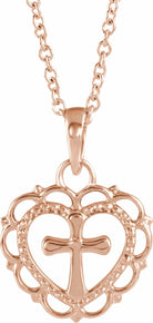 14K Rose Youth Heart with Cross 16-18 Necklace - R45398602P