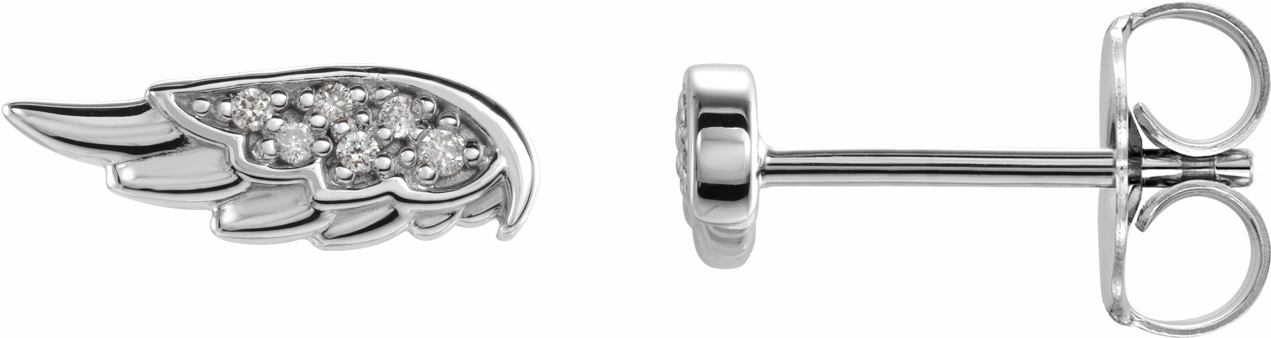 86909 / Set / 14K White / Pair / Polished / .03 Ctw Diamond Angel Wing Stud Earrings W/Backs