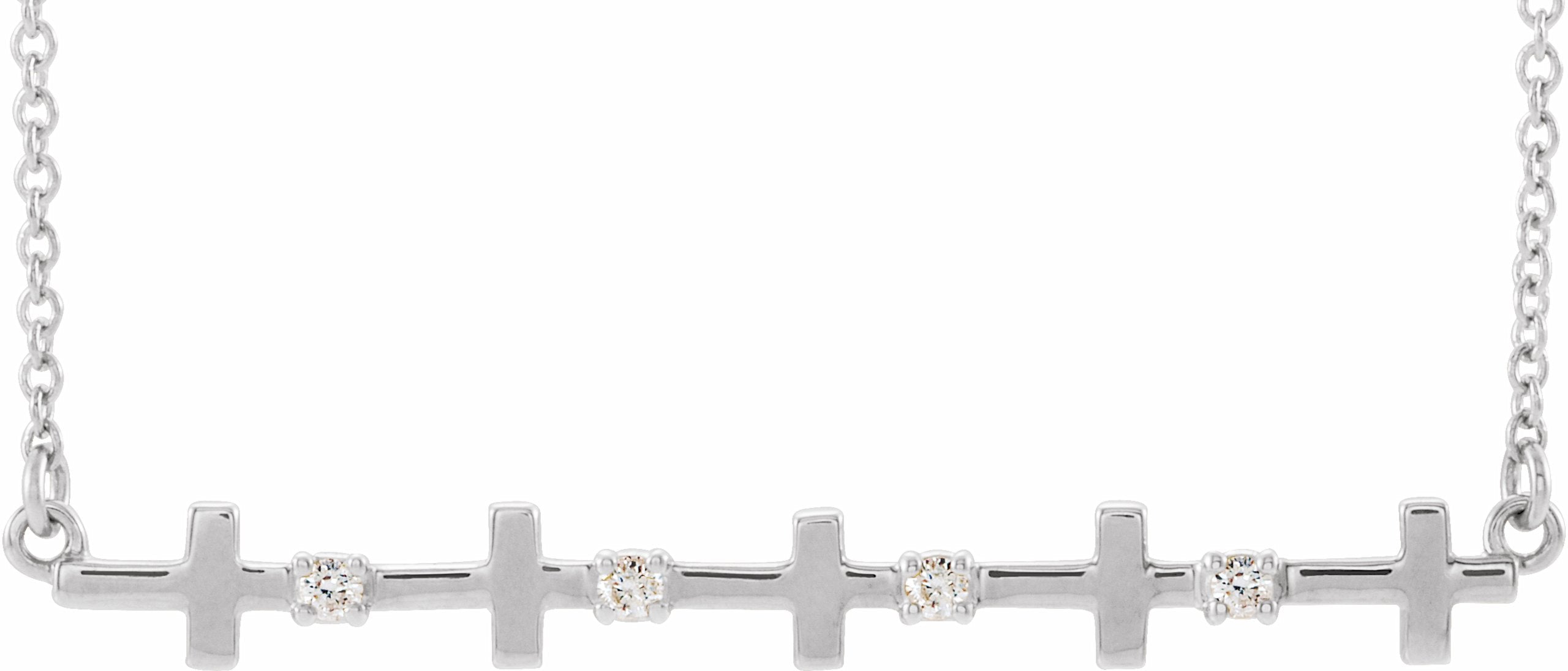 R45400 / Necklace / Set / 14K White / Polished / .05 Ctw Diamond Sideways Cross Bar Necklace