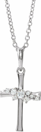 R42373 / Necklace / Set / 14K White / Polished / .06 Ctw Diamond Cluster Cross Necklace