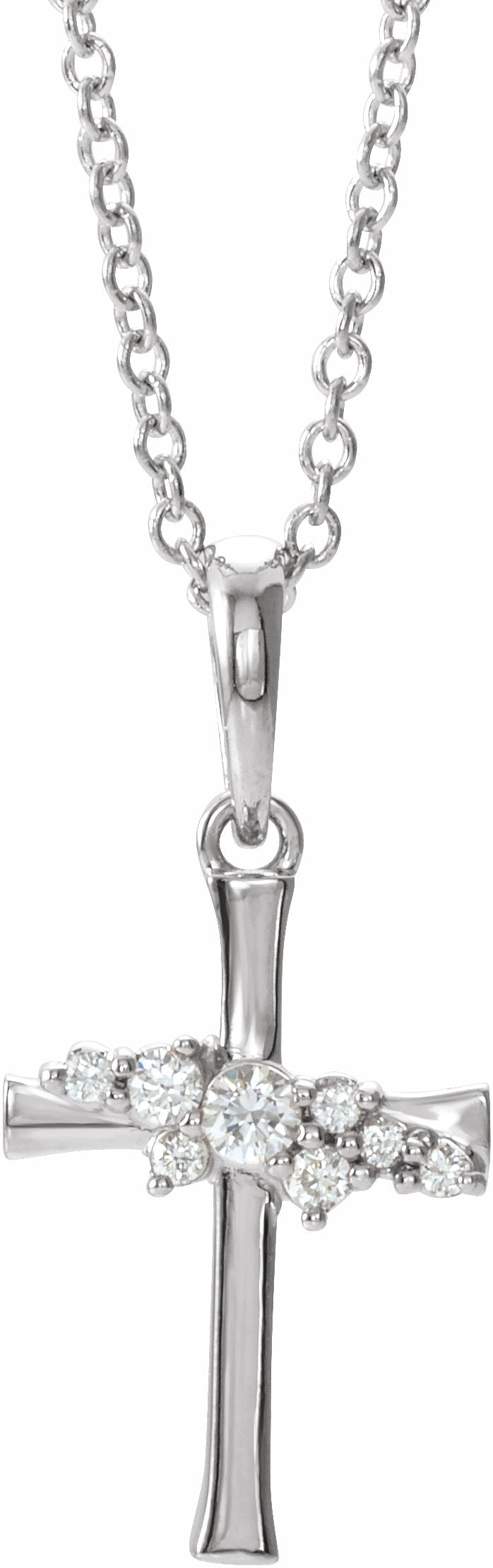 14K White .06 CTW Diamond Cluster Cross 16-18 Necklace - R42373610P