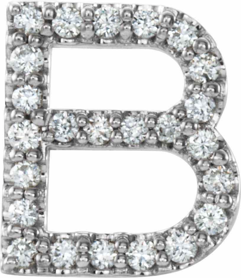 86797 / Set / 14K White / B / Each / Polished / 1/10 Ctw Diamond Initial Earring W/Back
