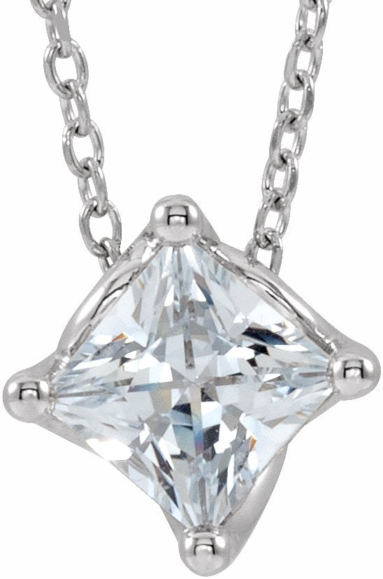 87136 / 14K White / Set / Diamond / Square / 4.5X4.5 Mm 1/2Ct / Necklace / 16-18 In / Polished / 1/2 Ct Diamond Solitaire Necklace
