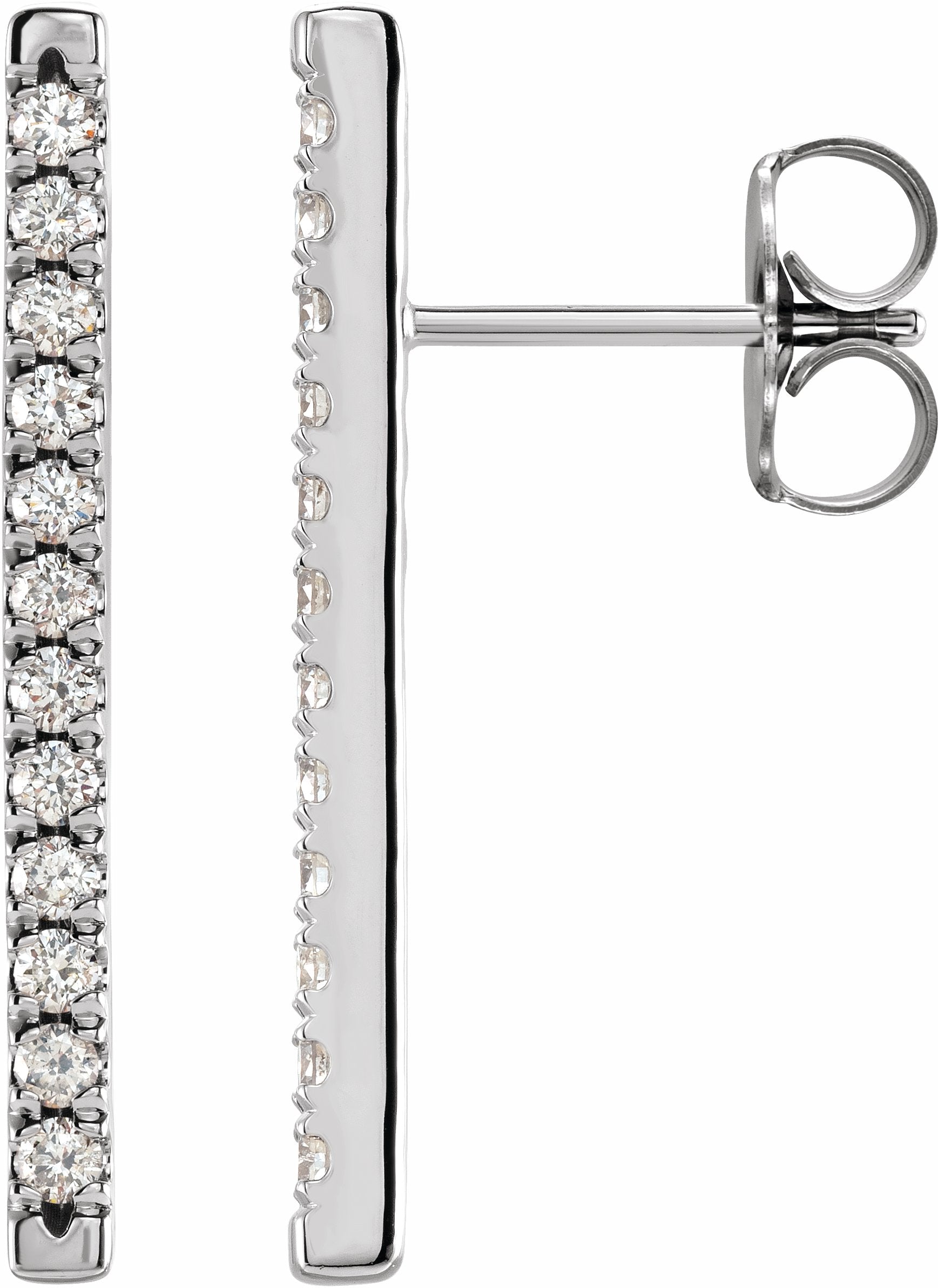87066 / Set / Diamond / Pair / 23.14 Mm :: 1/3 Ctw / 14K White / I1, G-H / Friction Backs Included / Polished / French-Set Diamond Bar Earrings