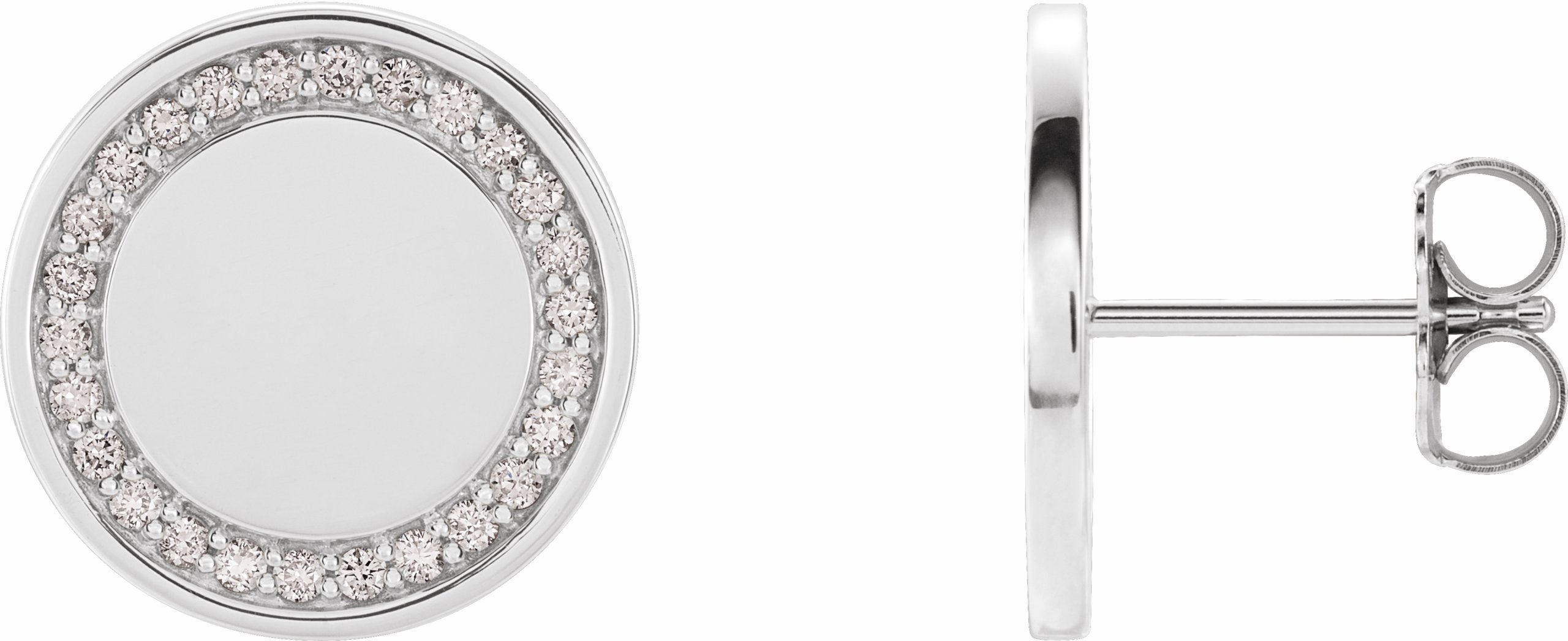86775 / Set / 14K White / Pair / Polished / 1/4 Ctw Diamond Engravable Earrings With Backs