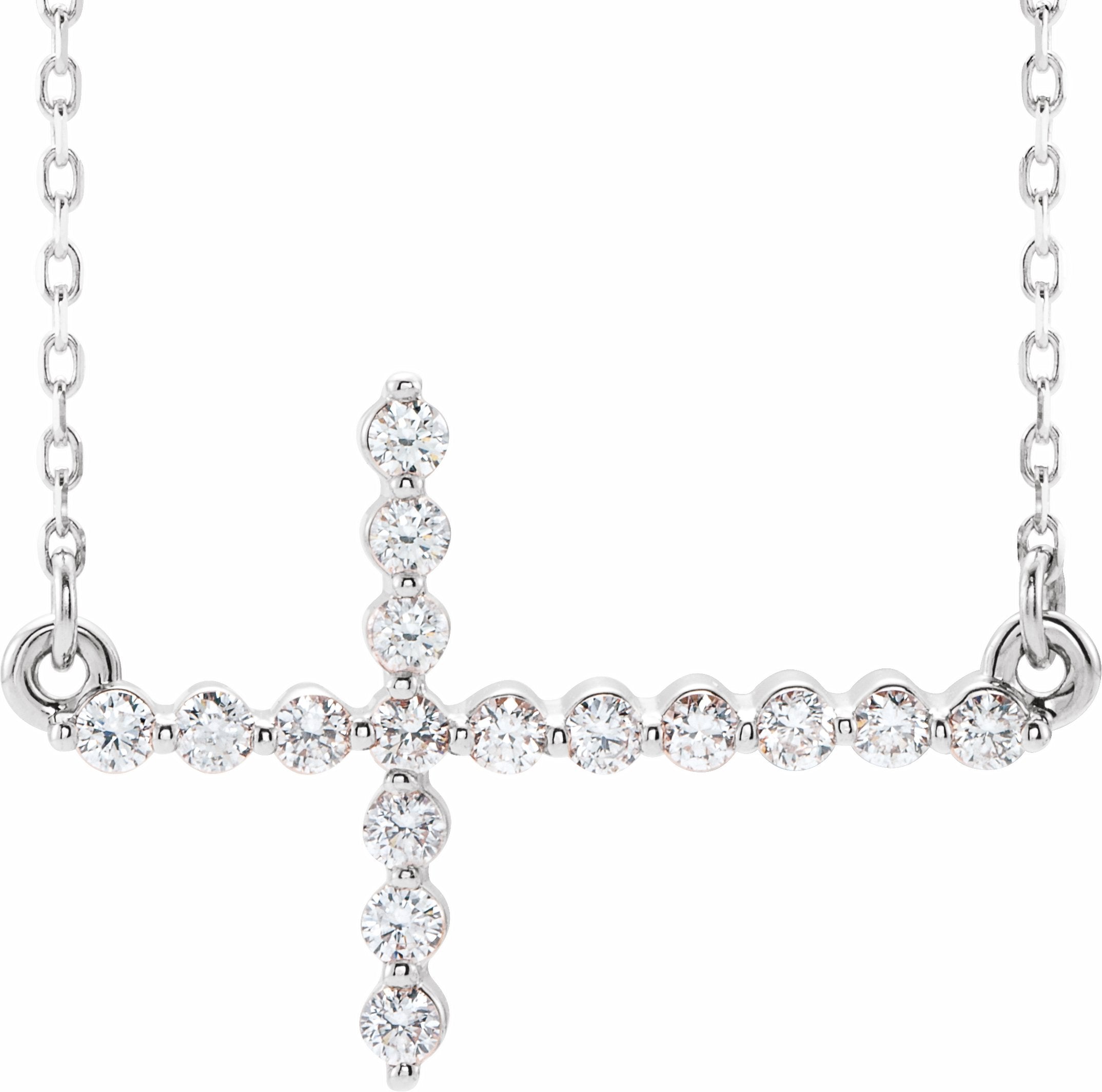 R42354 / Necklace / Set / 14K White / Polished / 1/4 Ctw Diamond Sideways Cross Necklace