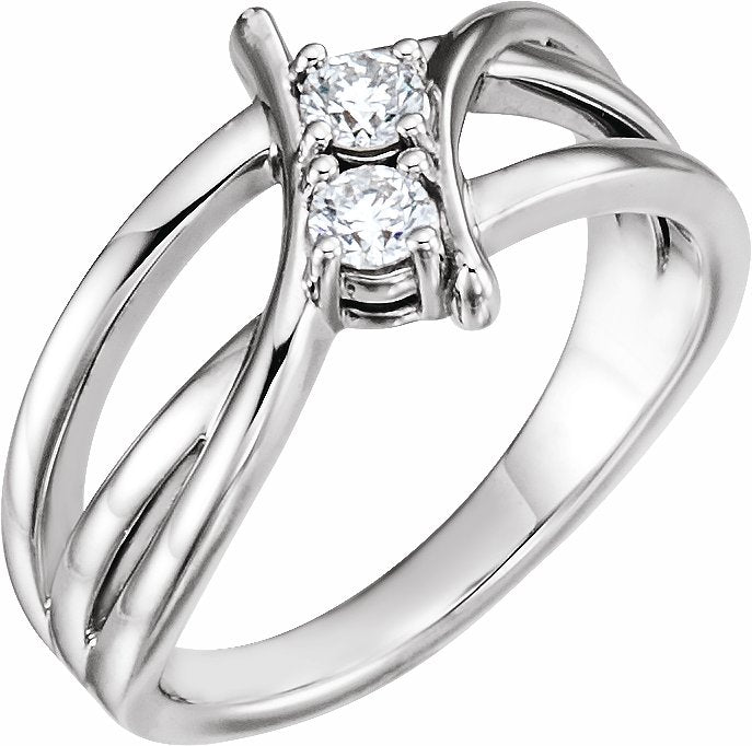 123228 / Set / 14K White / 3.2 Mm / Polished / 1/4 Ctw Diamond Two Stone Ring