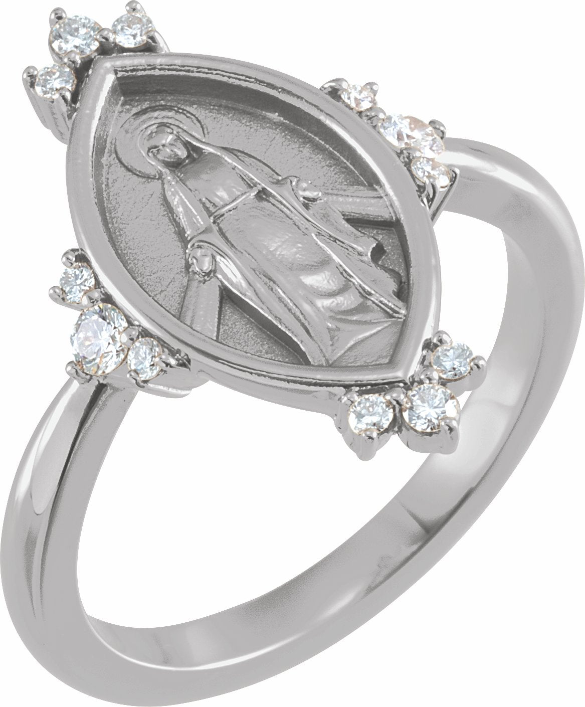 R43103 / Set / 14K White / Polished / 1/5 Ctw Diamond Miraculous Medal Ring