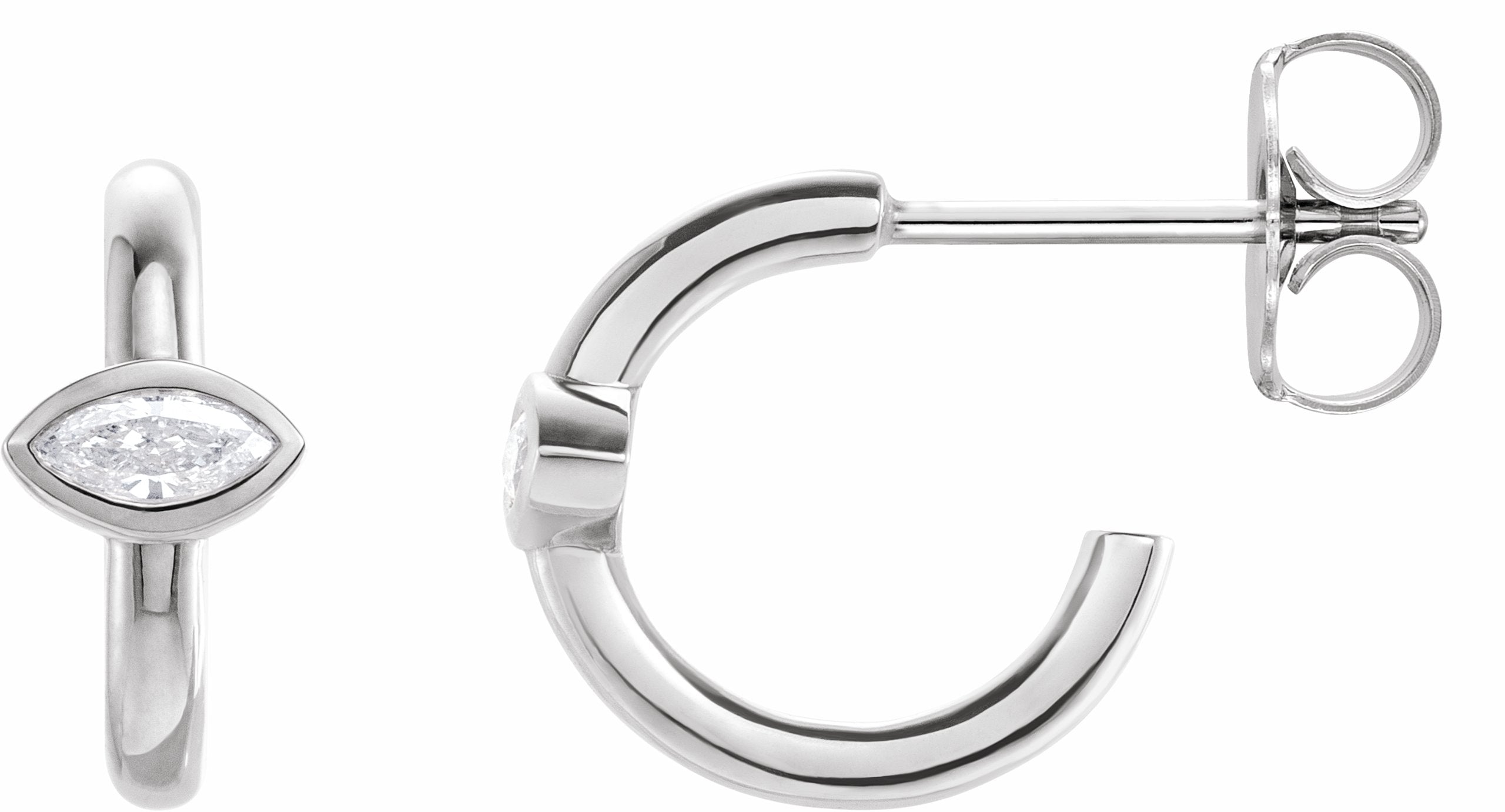 87081 / Earring / Set / Diamond / Marquise / 4 X 2 Mm / 14K White / Pair / Friction Backs Included / Polished / 1/8 Ctw Diamond J-Hoop Earrings