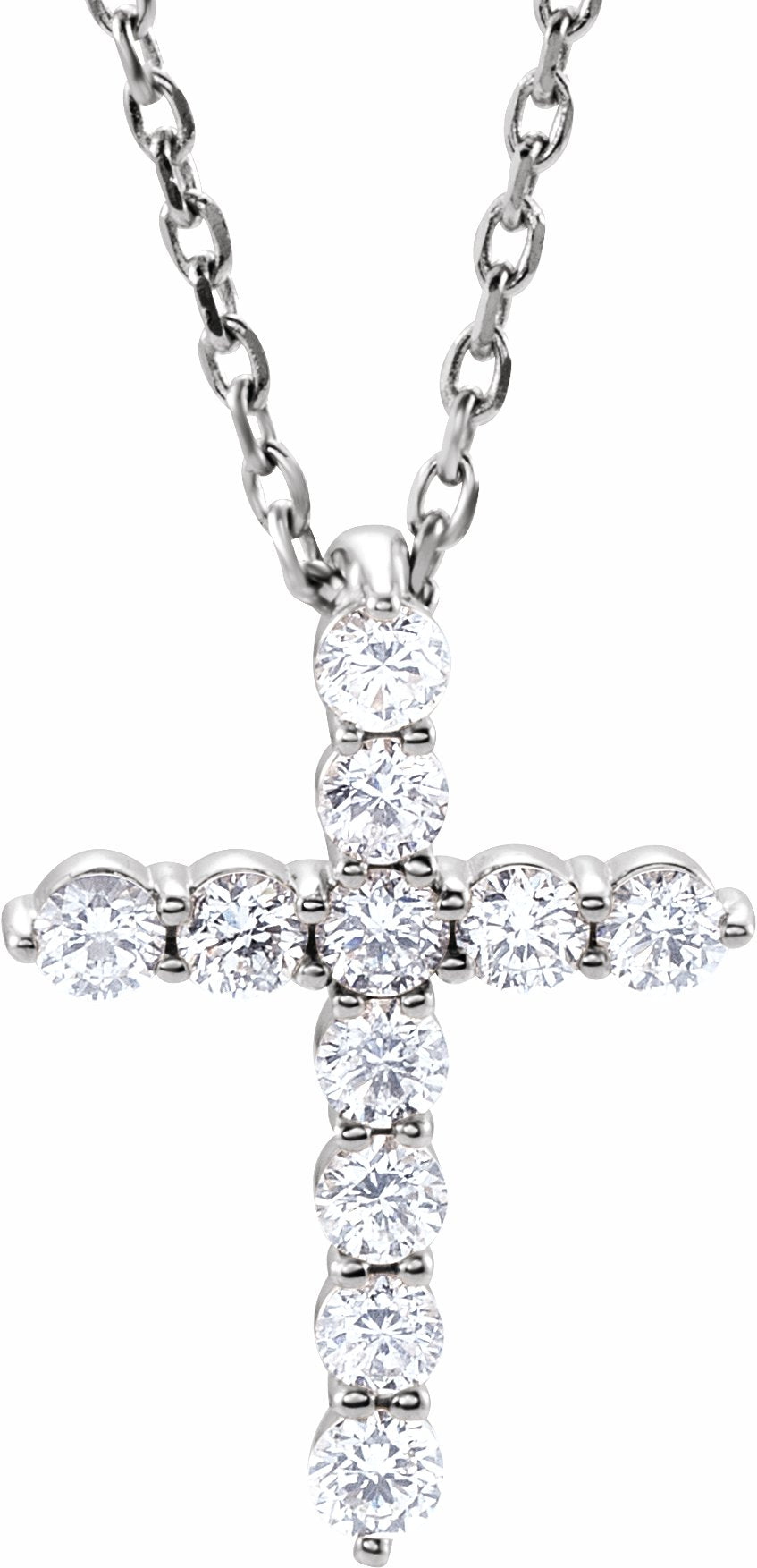 R42359 / Set / Diamond / Round / Necklace / 14K White / I1, G-H :: 1/4 Ctw / 14.6 X 10.5 Mm / 16-18 In / Polished / 1/4 Ctw Diamond Cross Necklace