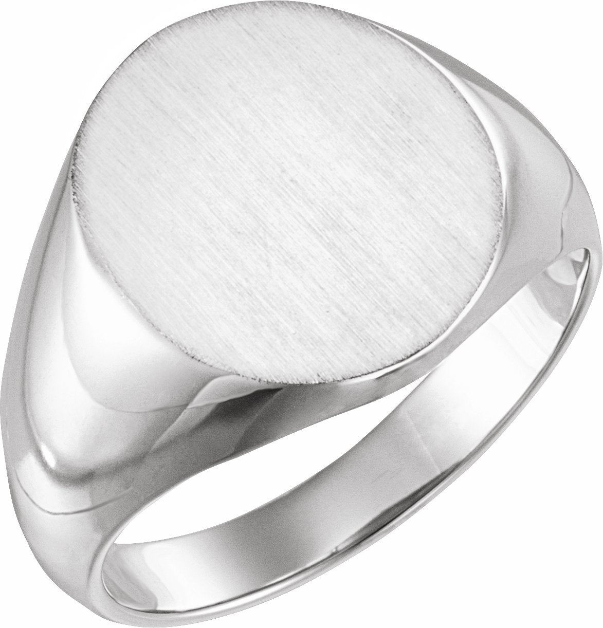 14K White 16x14 mm Oval Signet Ring - 9320113049P