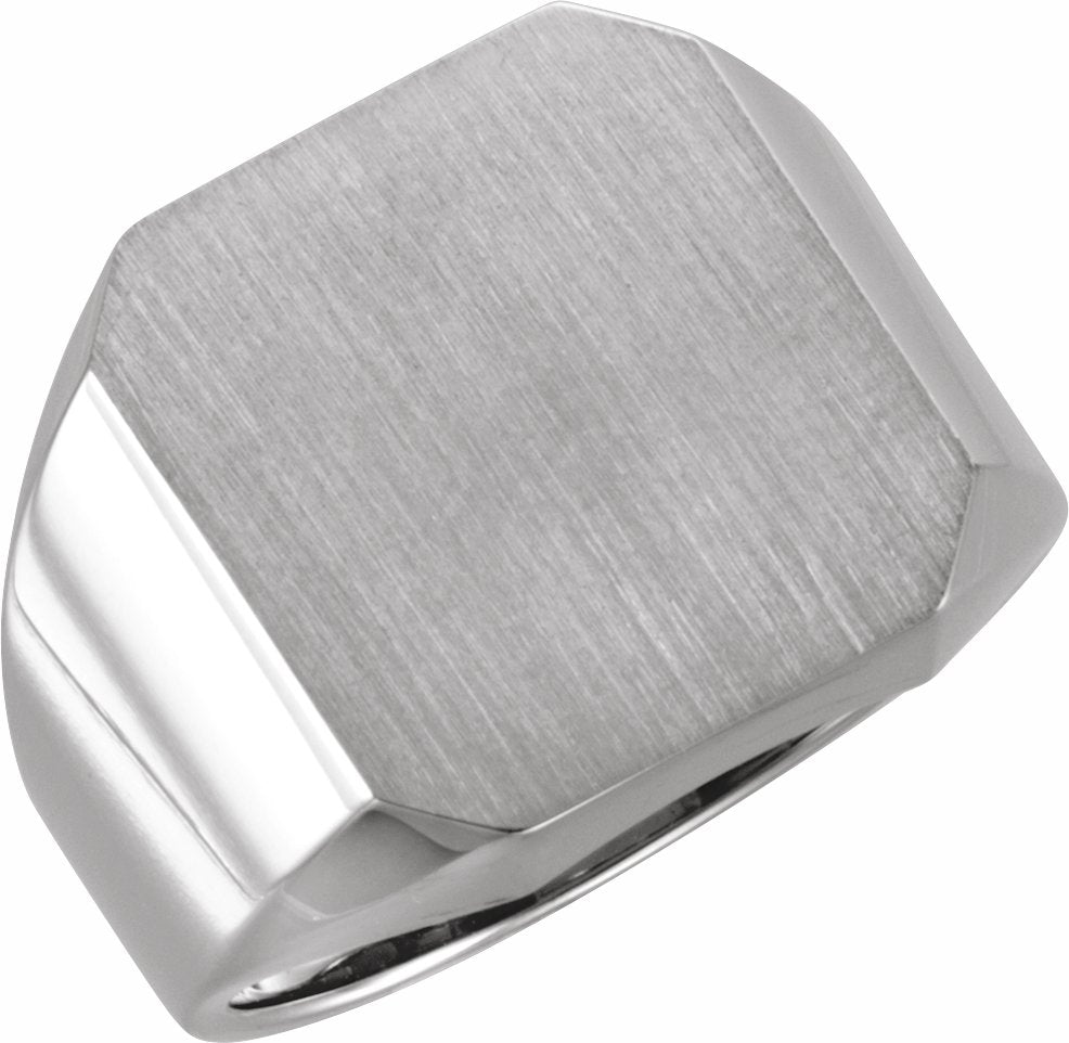 9128 / 14K White / 18 X 16 Mm / Brush Finished Top / Polished / Signet Ring