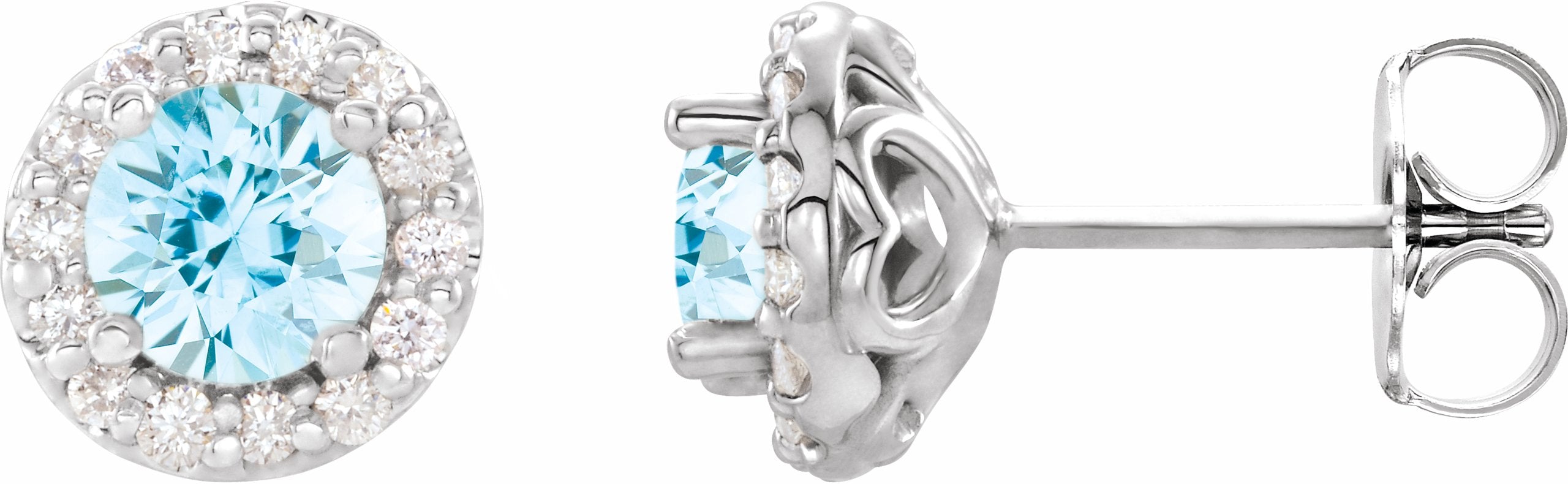 86839 / Earring / Set / Aquamarine / Round / 4 Mm / 14K White / Pair / Friction Backs Included / Polished / Aquamarine And 1/8 Ctw Diamond Earrings