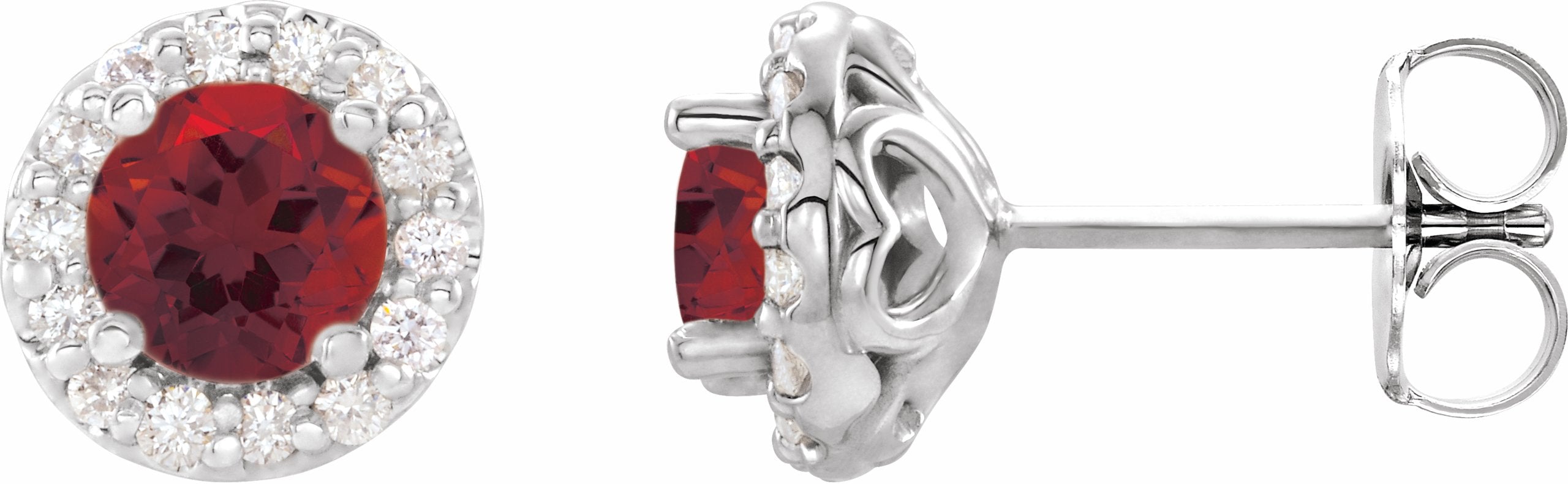 86839 / Earring / Set / Mozambique Garnet / Round / 4 Mm / 14K White / Pair / Friction Backs Included / Polished / Mozambique Garnet And 1/8 Ctw Diamond Earrings