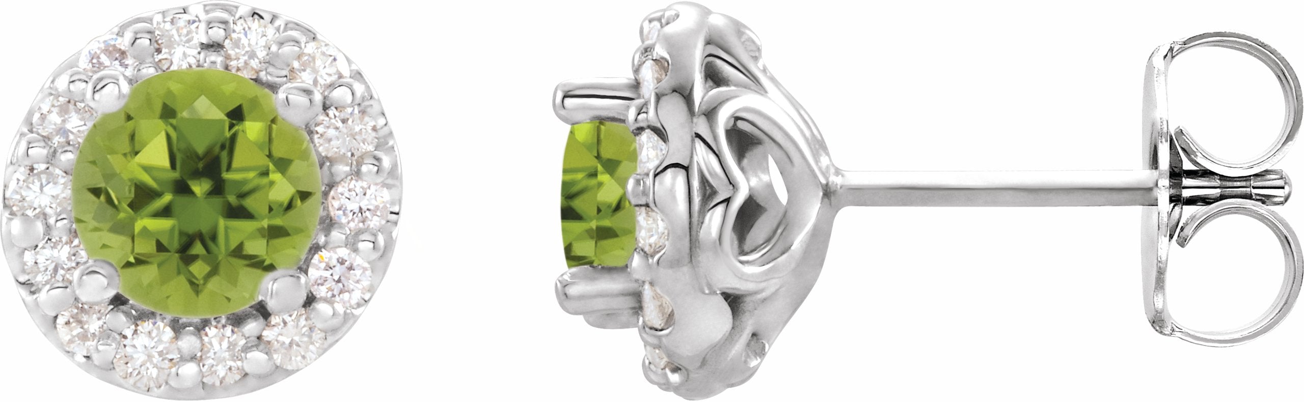 86839 / Earring / Set / Peridot / Round / 6 Mm / 14K White / Pair / Friction Backs Included / Polished / Peridot And 1/4 Ctw Diamond Earrings