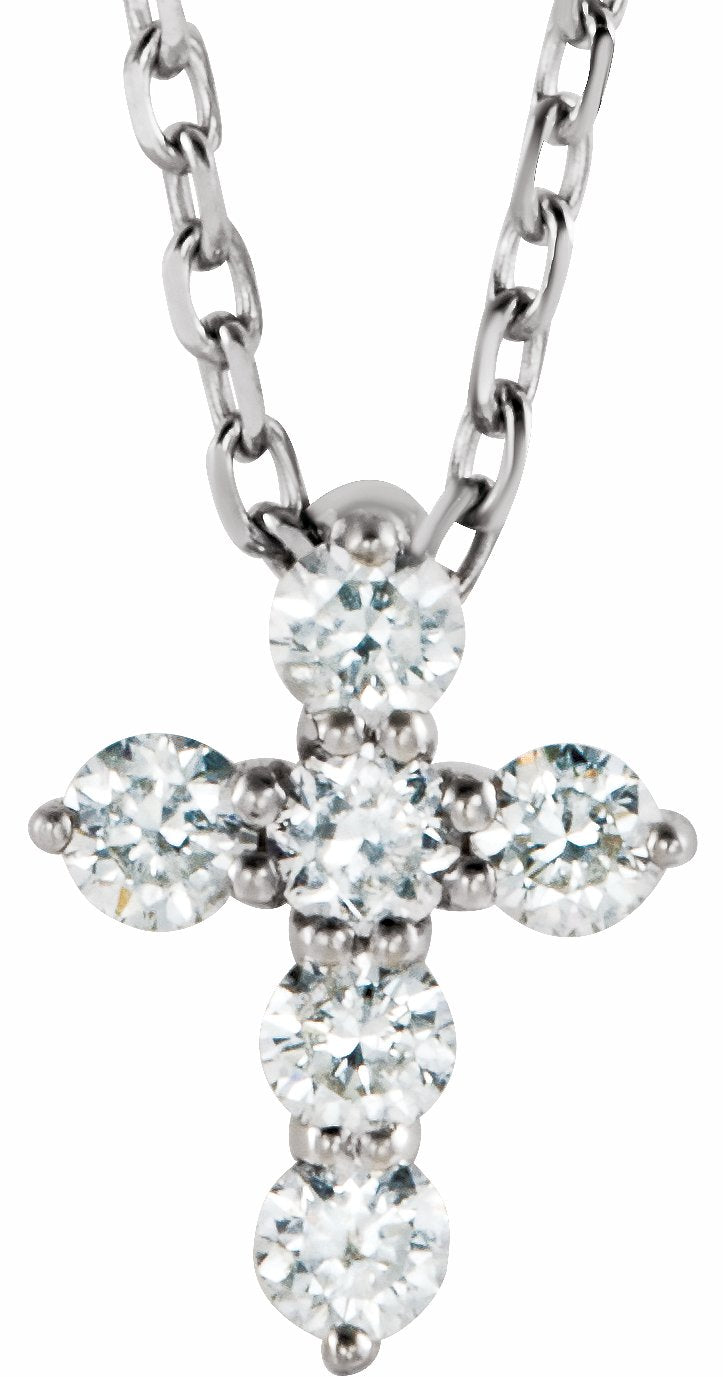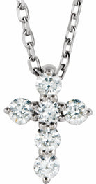 R42359 / Set / Diamond / Round / Necklace / 14K White / I1, G-H :: 1/6 Ctw / 8.7 X 6.6 Mm / 16-18 In / Polished / 1/6 Ctw Diamond Cross Necklace
