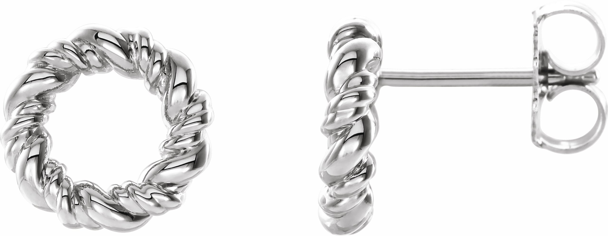 86821 / 14K White / 9.4 Mm / Pair / Friction Backs Included / Polished / Circle Rope Earrings