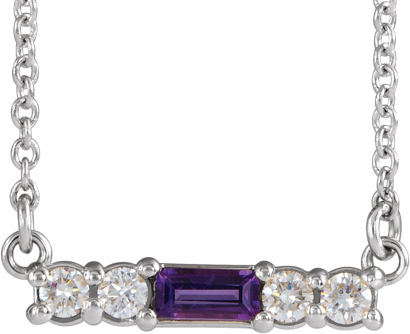 86838 / Necklace / Set / 14K White / Amethyst / 4 X 2 Mm / 15.8 X 3.8 Mm / 18 In / Polished / Genuine Amethyst And 1/5 Ctw Diamond Necklace