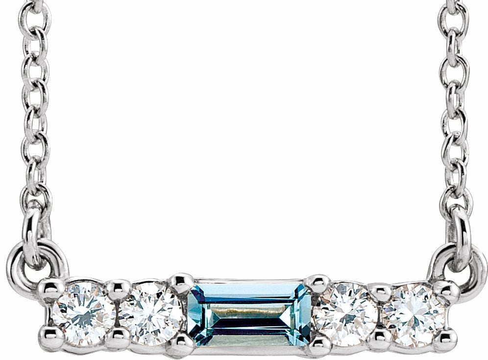 86838 / Necklace / Set / 14K White / Aquamarine / 4 X 2 Mm / 15.8 X 3.8 Mm / 18 In / Polished / Genuine Aquamarine And 1/5 Ctw Diamond Necklace