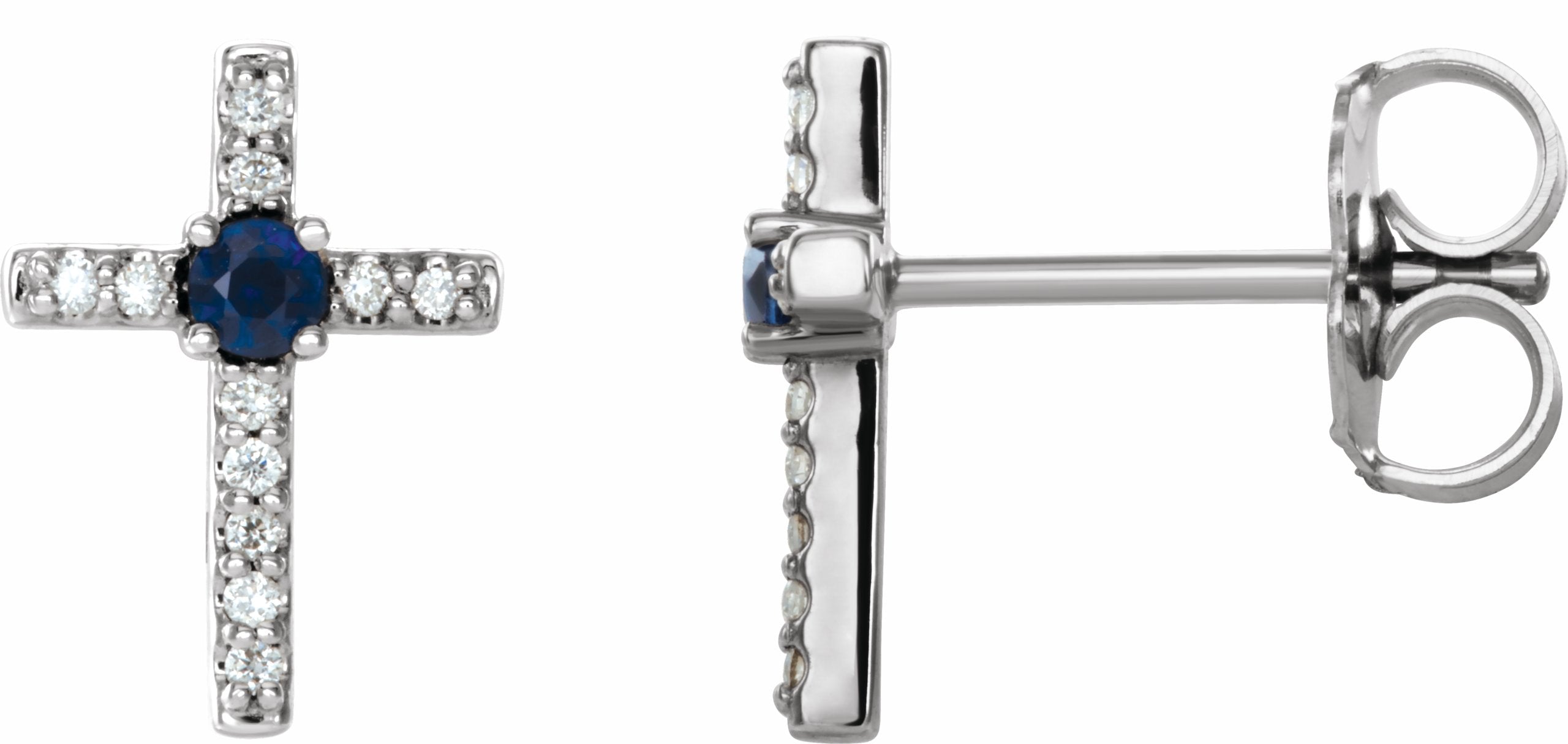 14K White Blue Sapphire & .05 CTW Diamond Cross Earrings - R17021608P