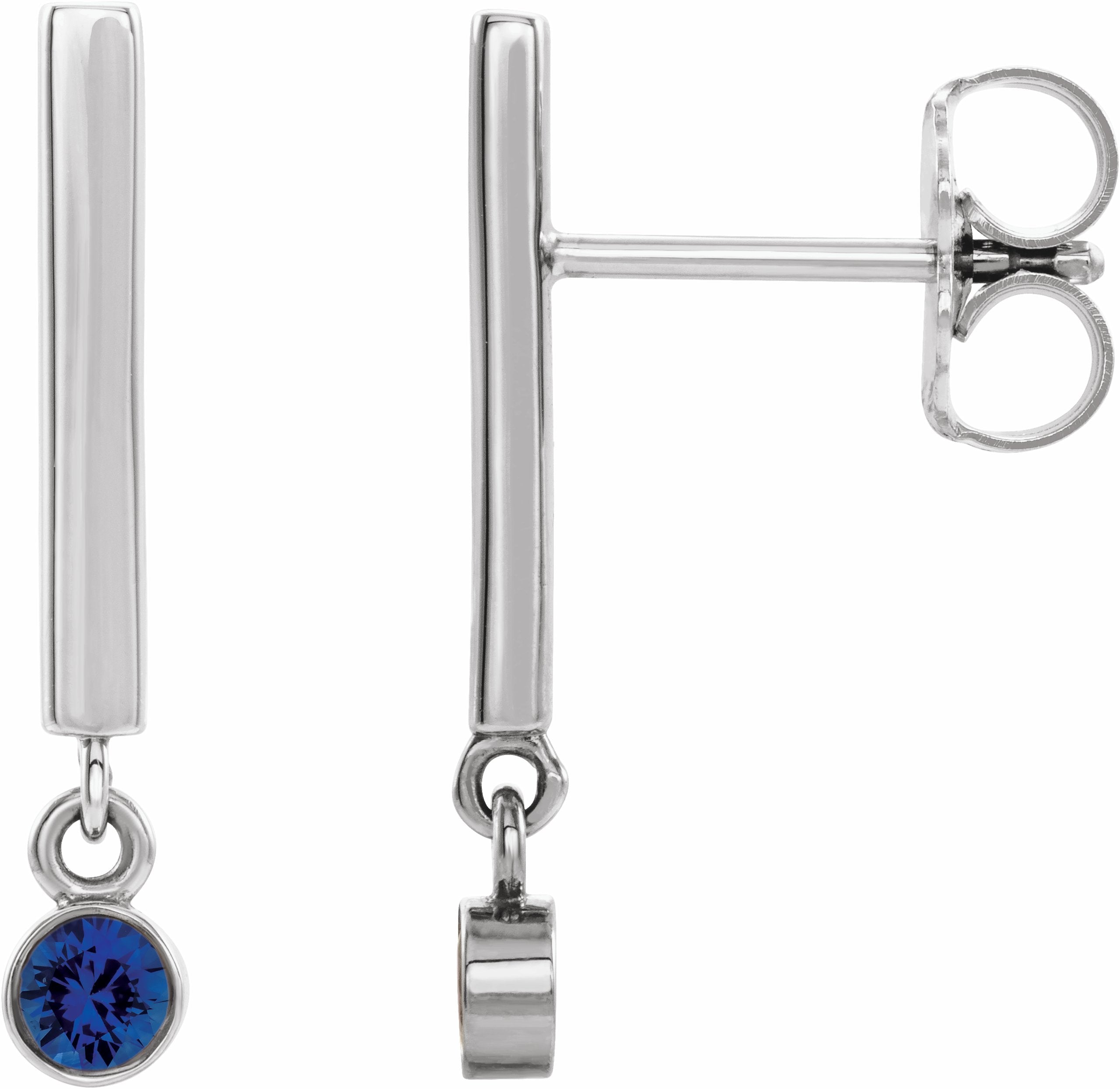 14K White Blue Sapphire Bar Earrings - 869066008P