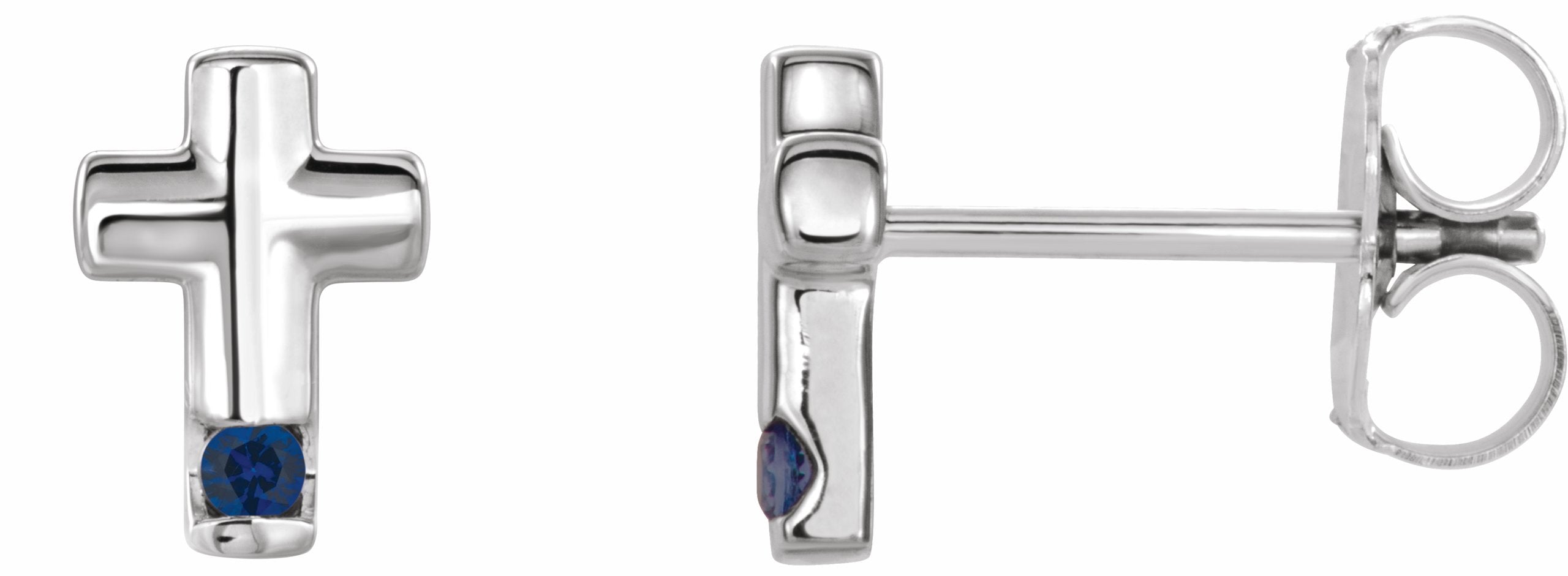 R17020 / Set / 14K White / Blue Sapphire / Pair / Polished / Genuine Blue Sapphire Cross Earrings