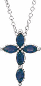 R42377 / Necklace / Set / 14K White / Blue Sapphire / Marquise / 4 X 2 Mm / Polished / Genuine Blue Sapphire Cross Necklace