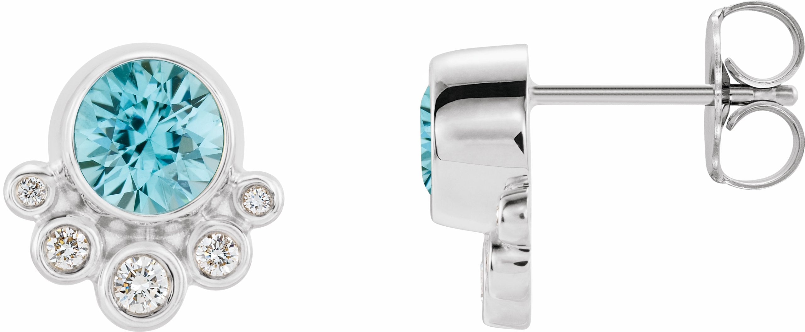 86777 / Set / 14K White / Blue Zircon / Pair / Polished / Genuine Blue Zircon And 1/8 Ctw Diamond Earrings