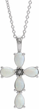 R42378 / Necklace / Set / 14K White / White Opal / 5 X 3 Mm / Polished / Genuine Cabochon White Opal Cross Necklace