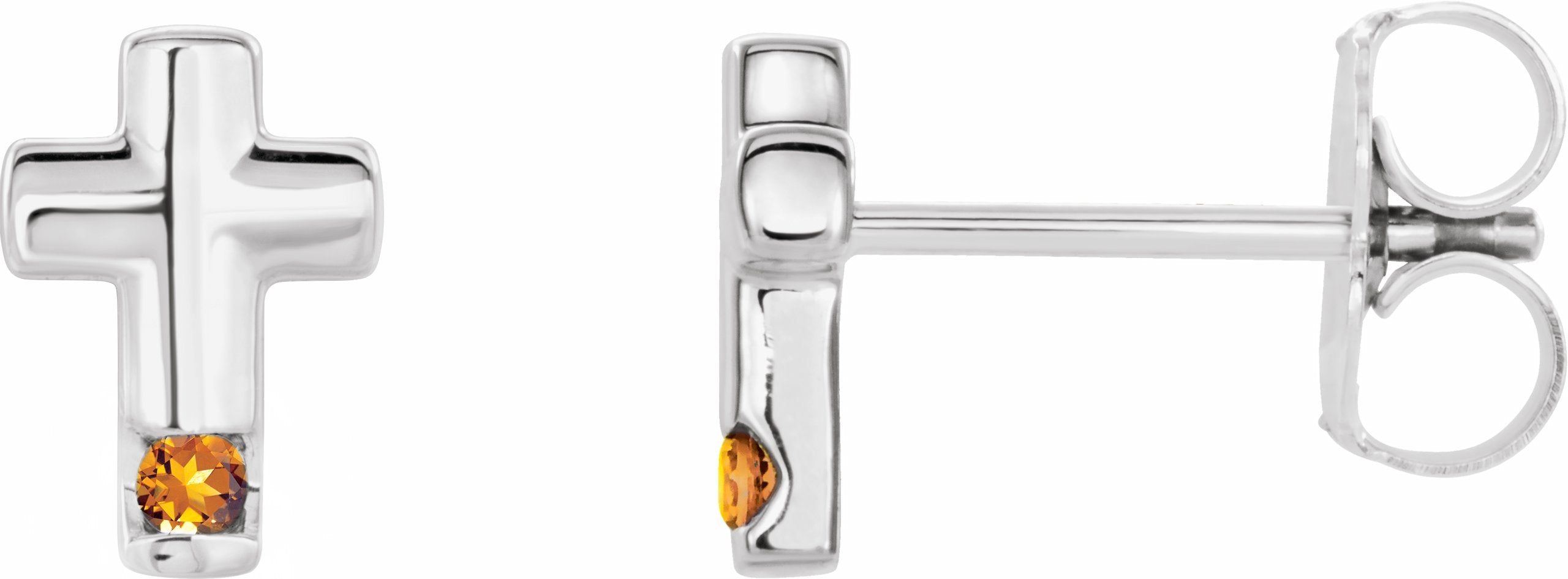 R17020 / Set / 14K White / Citrine / Pair / Polished / Genuine Citrine Cross Earrings