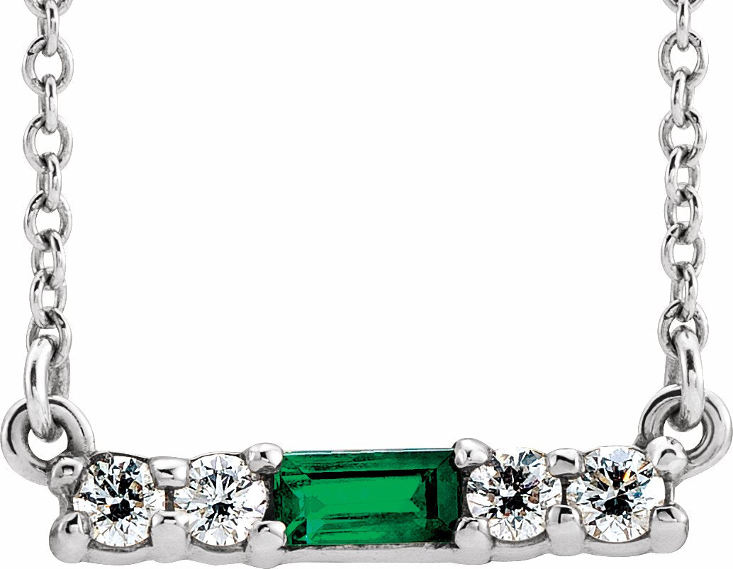 86838 / Necklace / Set / 14K White / Emerald / 4 X 2 Mm / 15.8 X 3.8 Mm / 18 In / Polished / Genuine Emerald And 1/5 Ctw Diamond Bar Necklace