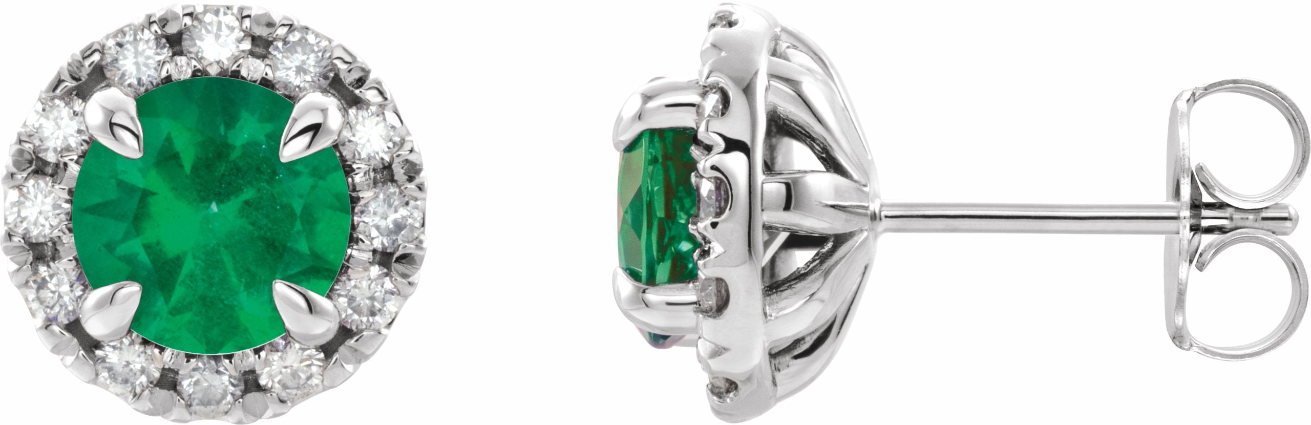 86971 / Set / 14K White / Emerald / 4 Mm / 1/4 Ctw / Pair / Polished / Genuine Emerald And 1/5 Ctw Diamond Earrings