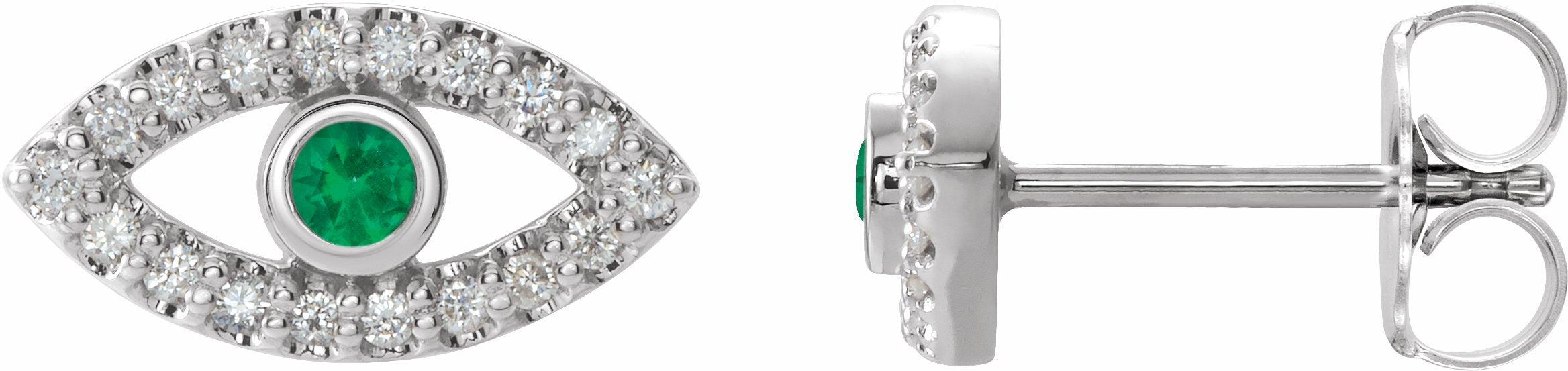 86884 / Set / 14K White / Emerald / Pair / Polished / Genuine Emerald And White Sapphire Earrings