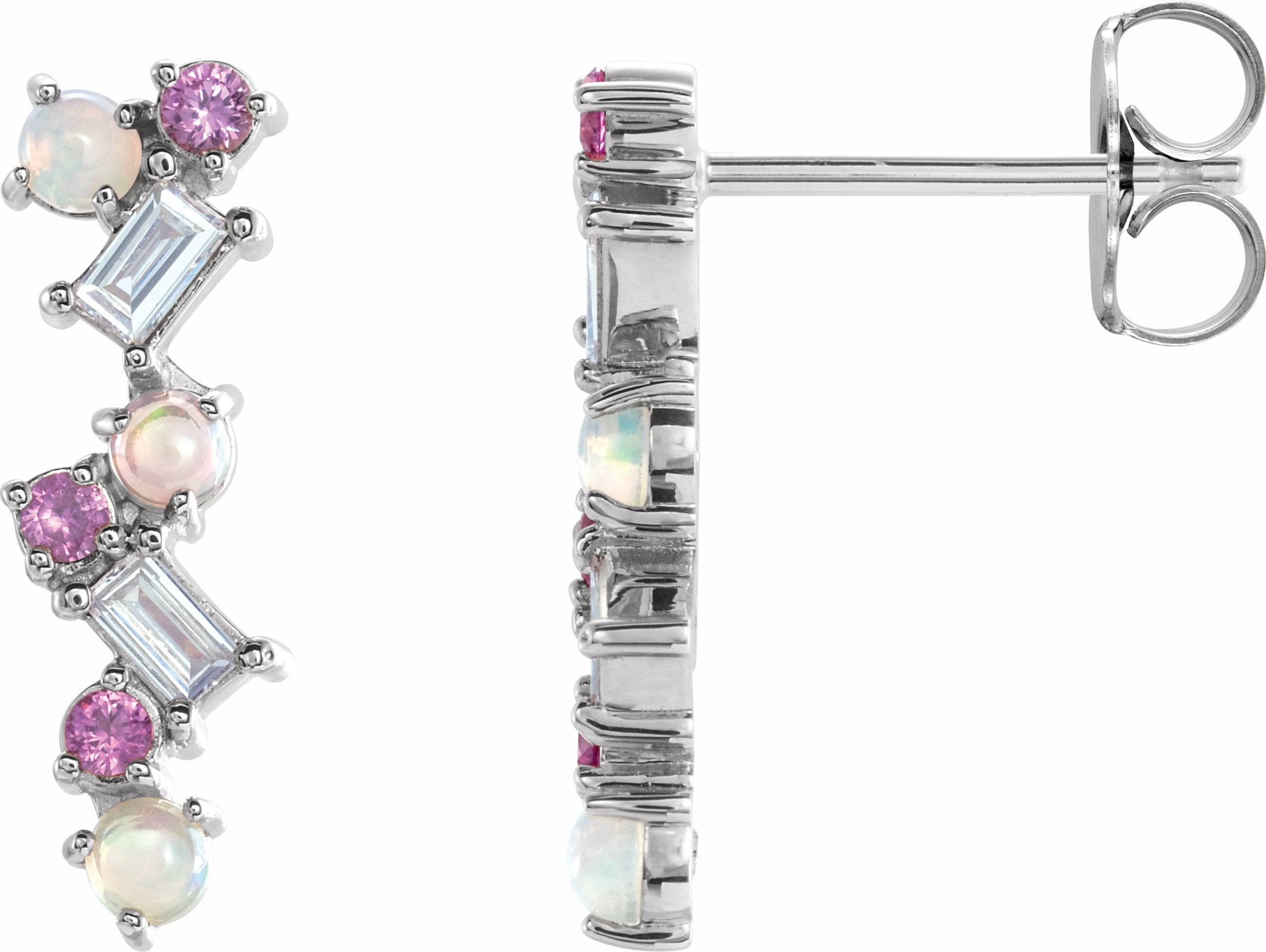 87048 / Set / 14K White / Genuine Ethiopian Opals, Pink Sapphires, Diamonds / Friction Backs Included / Pair / Polished / Multi-Gemstone Drop Earrings