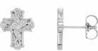 R17018 / 14K White / Pair / Polished / Floral-Inspired Cross Earrings With Backs