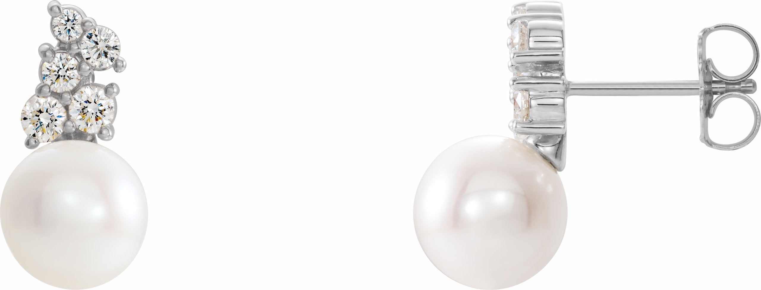 86891 / Set / 14K White / Pair / Polished / White Freshwater Cultured Pearl And 3/8 Ctw Diamond Earrings
