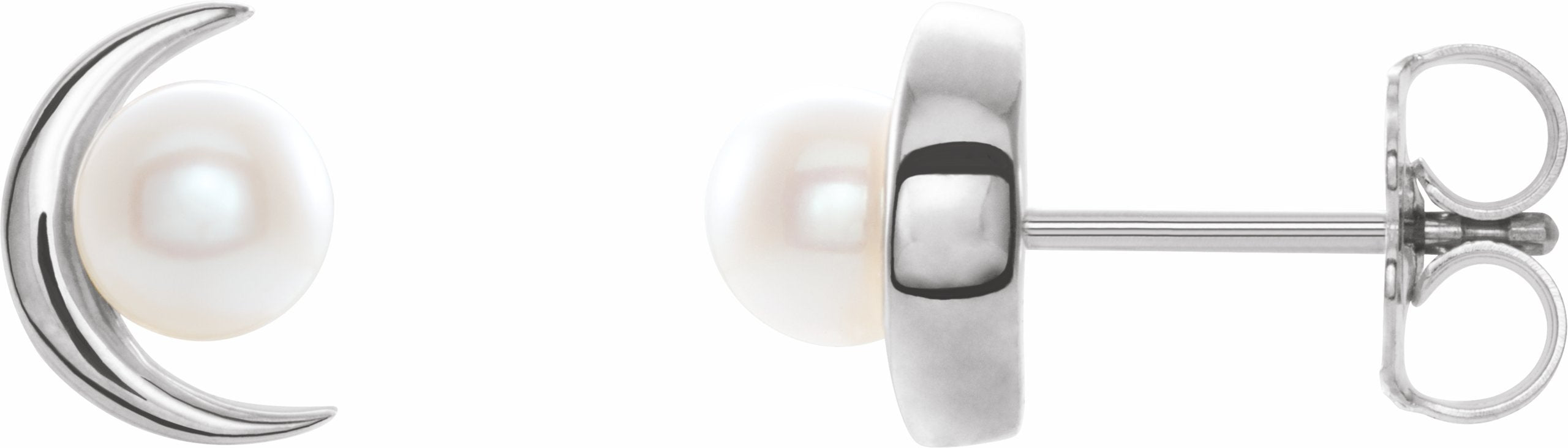86805 / Set / 14K White / Pair / Polished / White Freshwater Pearl Earrings With Backs