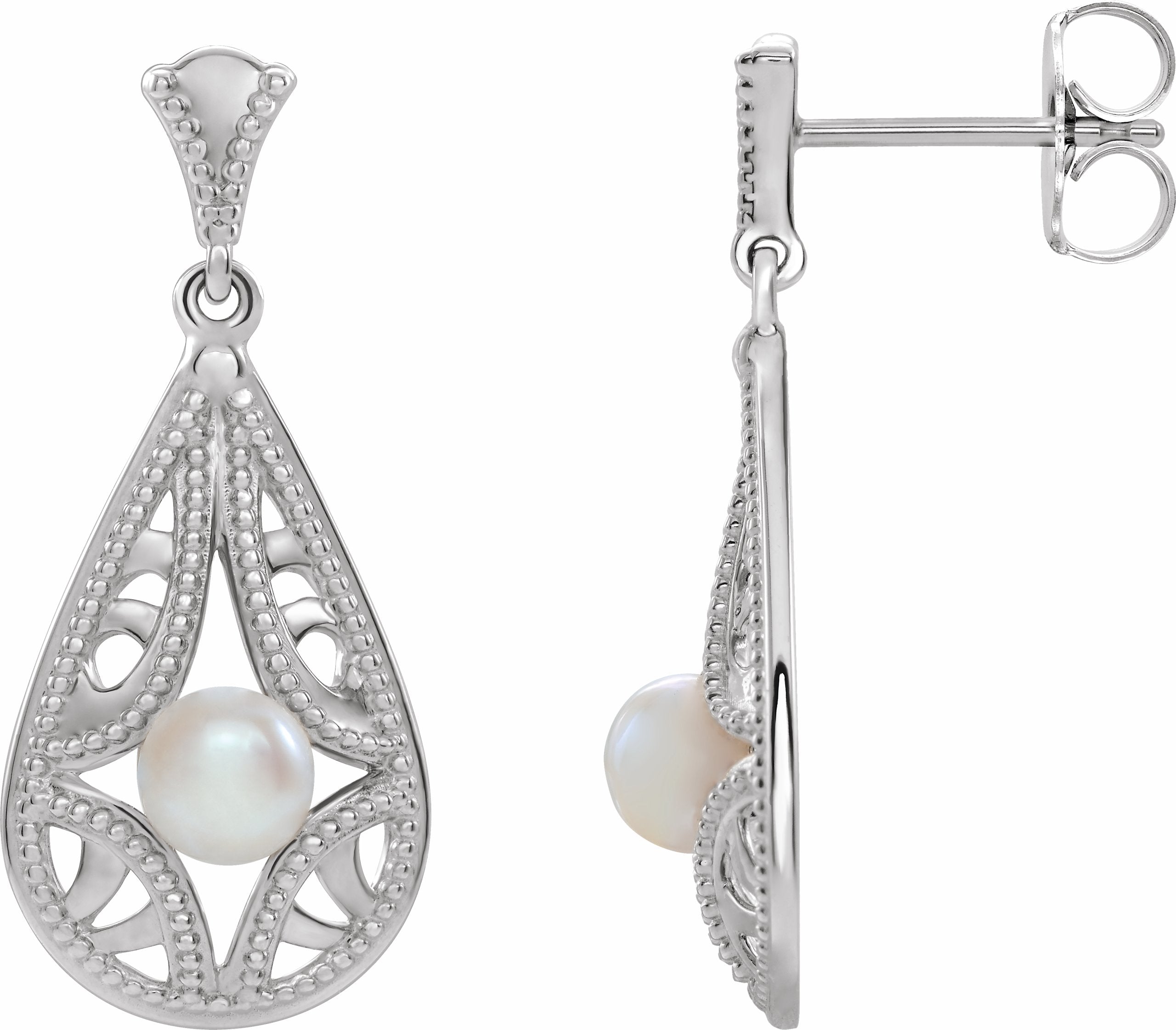 86932 / Set / 14K White / Pair / Polished / Freshwater Cultured Pearl Dangle Earrings