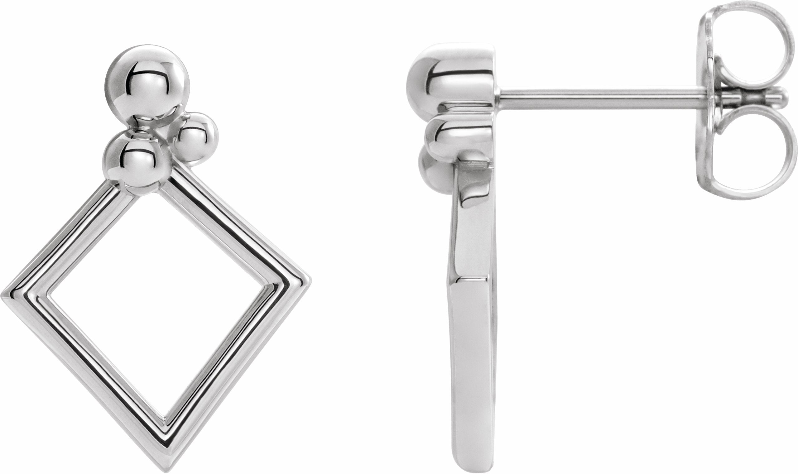 86937 / 14K White / Pair / Polished / Geometric Earrings With Backs