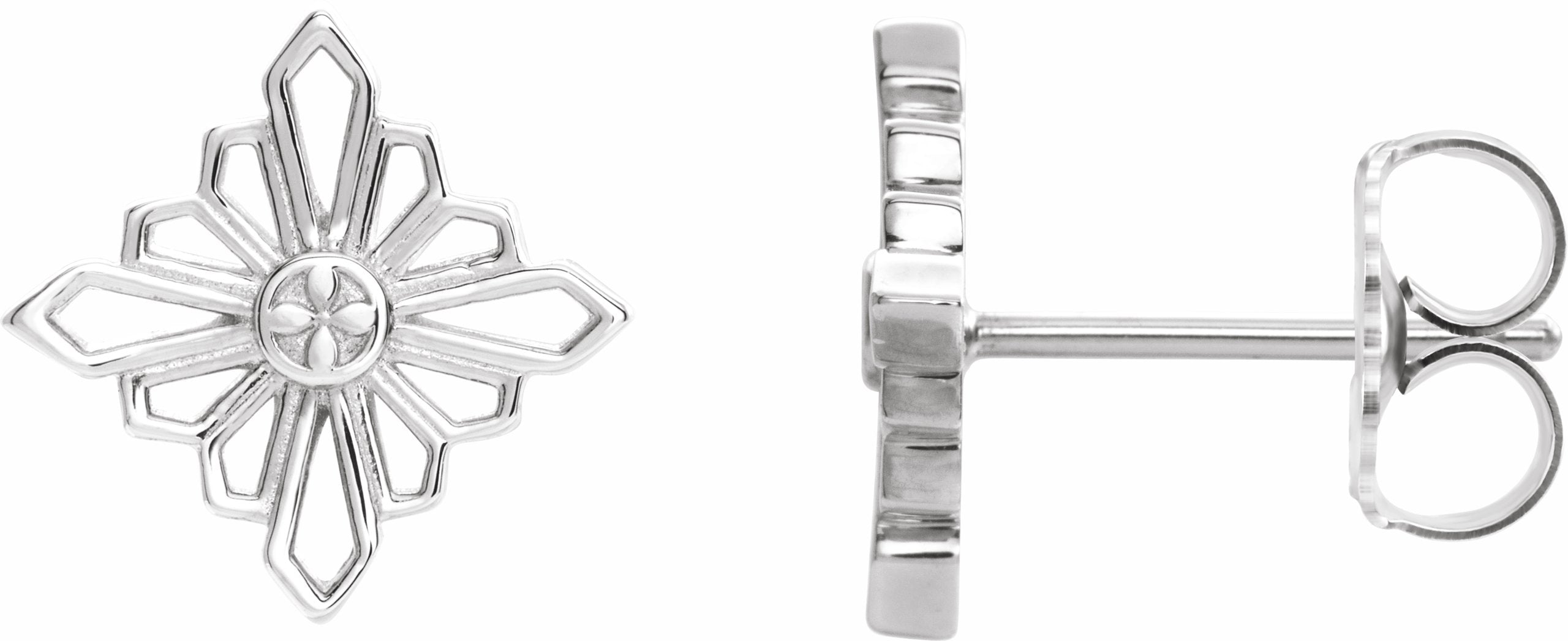 86985 / 14K White / Pair / Polished / Vintage-Inspired Geometric Earrings With Backs