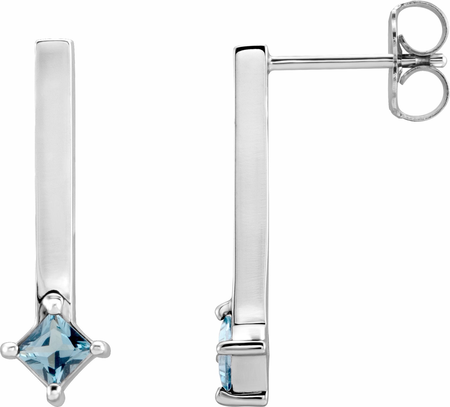 87023 / Set / 14K White / London Blue Topaz / Pair / Polished / Genuine London Blue Topaz Bar Drop Earrings With Backs
