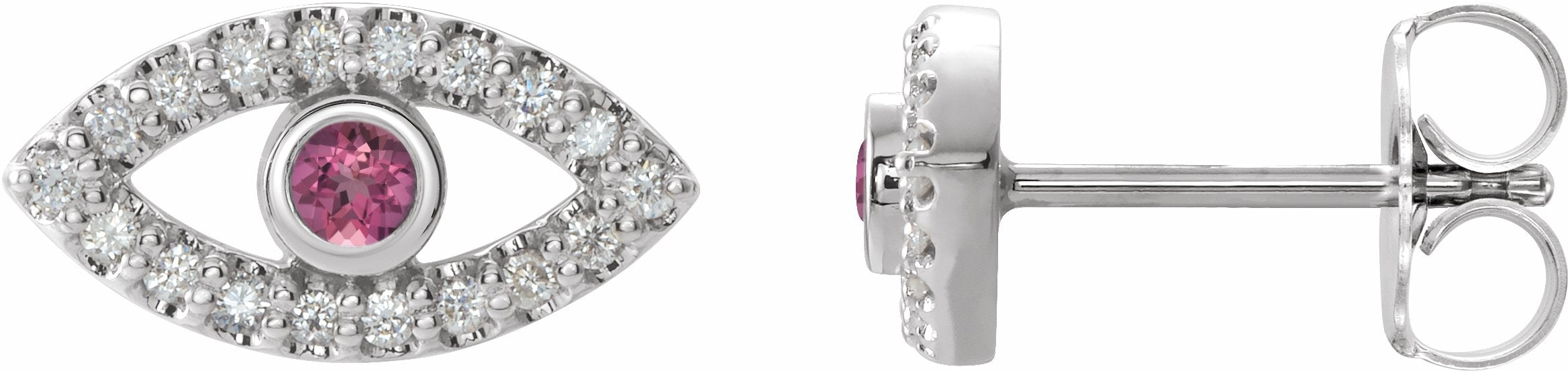14K White Pink Tourmaline & White Sapphire Earrings - 86884627P