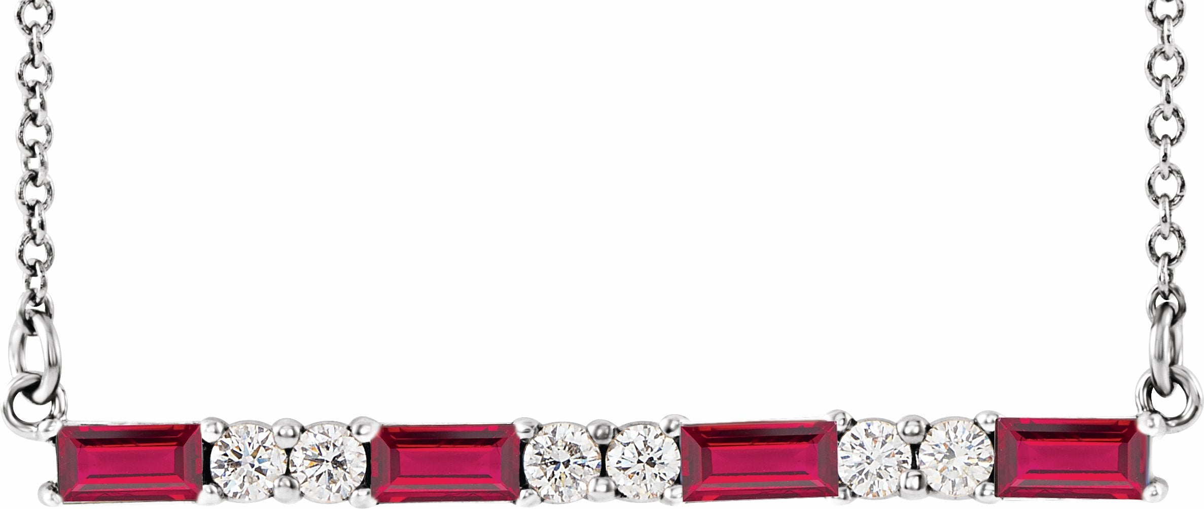 86790 / Necklace / Set / 14K White / Ruby / Straight Baguette / 4 X 2 Mm / Polished / Genuine Ruby And 1/5 Ctw Diamond Bar Necklace