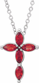 R42377 / Necklace / Set / 14K White / Ruby / Marquise / 4 X 2 Mm / Polished / Genuine Ruby Cross Necklace
