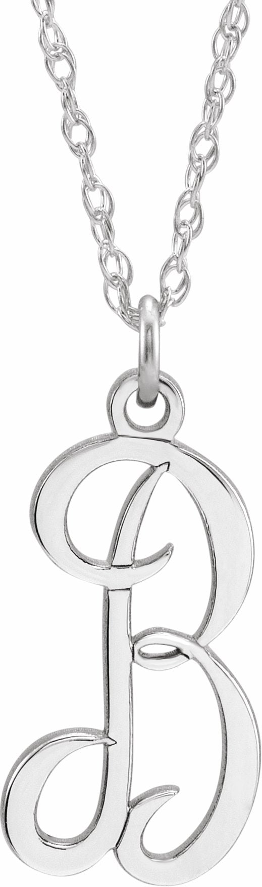 87090 / 14K White / B / 16-18 In / Polished / Script Initial Necklace