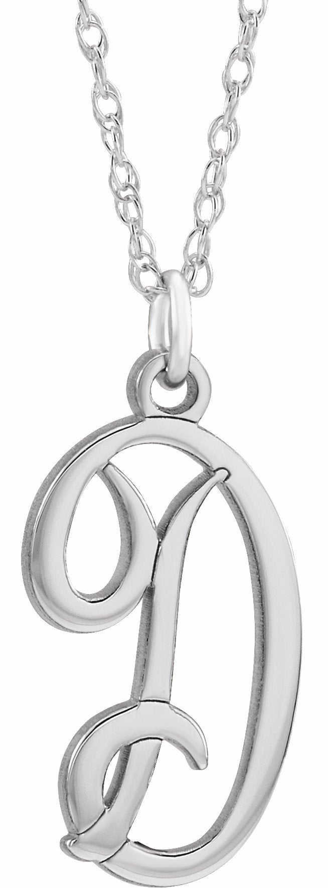 87090 / 14K White / D / 16-18 In / Polished / Script Initial Necklace