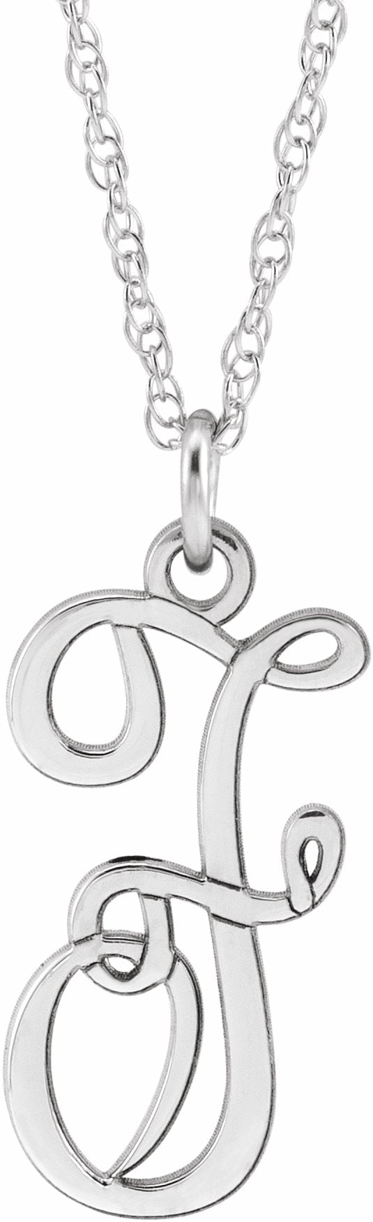 87090 / 14K White / F / 16-18 In / Polished / Script Initial Necklace