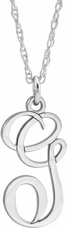 87090 / 14K White / G / 16-18 In / Polished / Script Initial Necklace