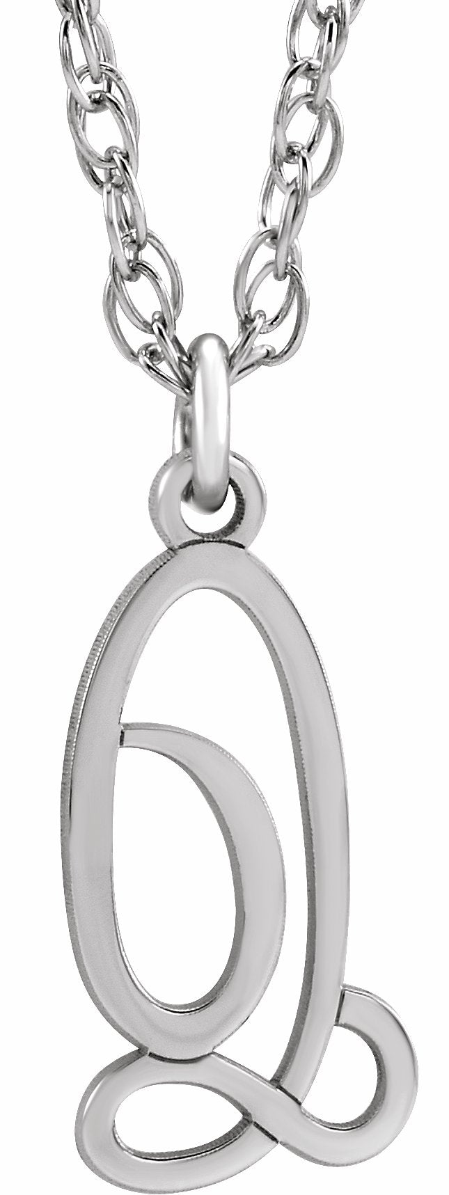 87090 / 14K White / Q / 16-18 In / Polished / Script Initial Necklace